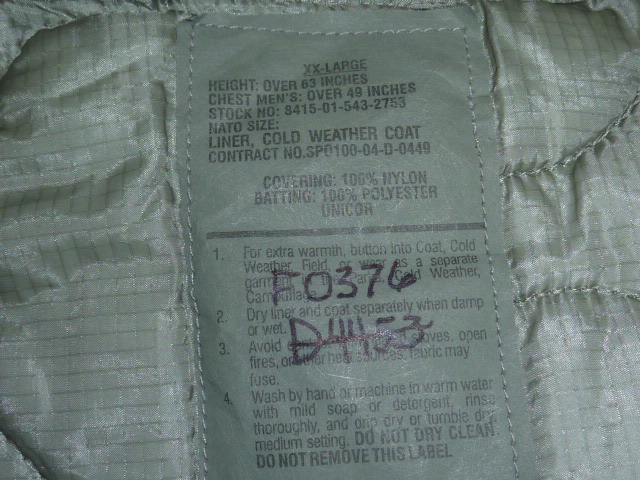 米軍放出品,M-65フィールドジャケットライナー XXL