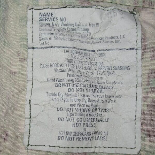 米軍実物,US NAVY, AOR2 NUW 迷彩パンツ TYPEIII S-R
