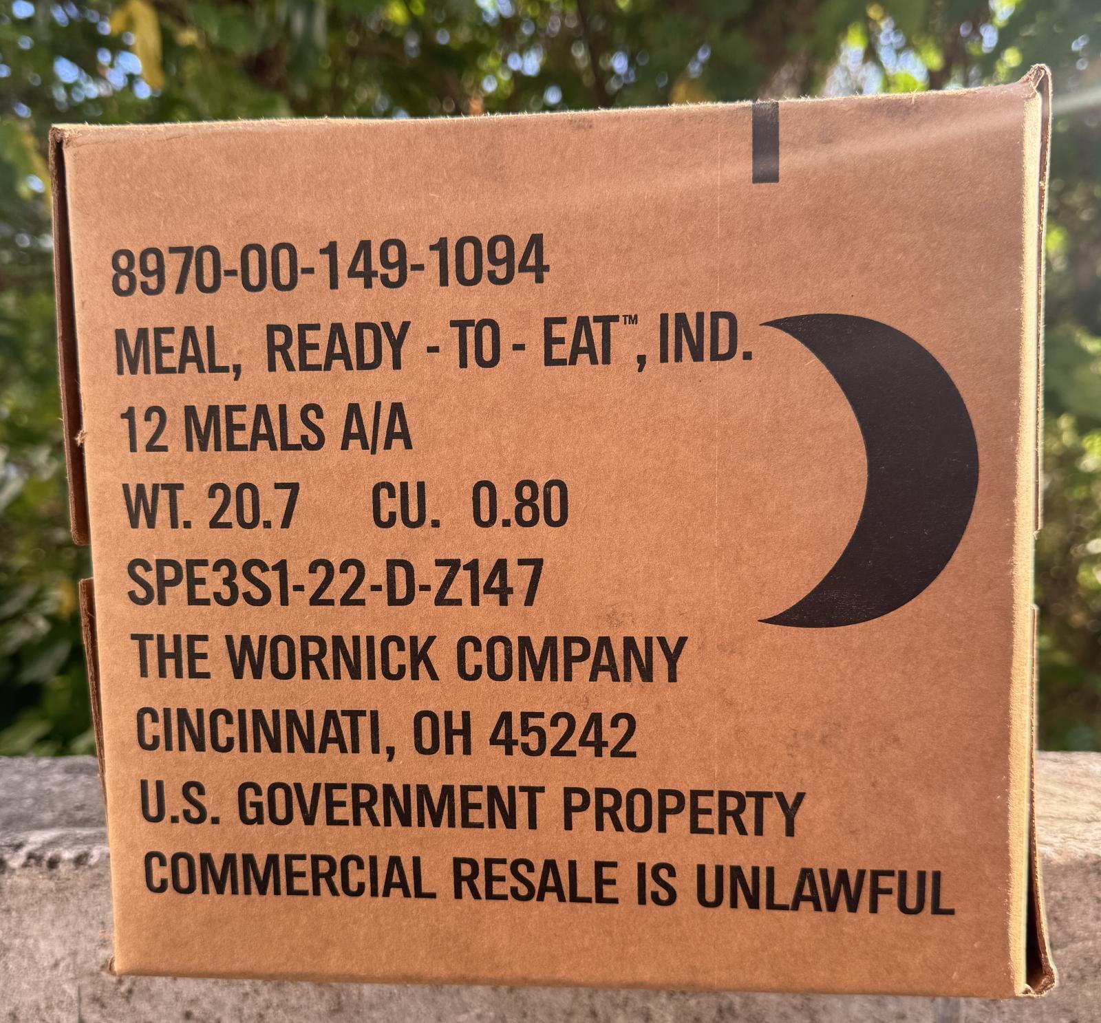 米軍実物 ワーニック社 MREレーション/戦闘食 MENU-A 12個セット