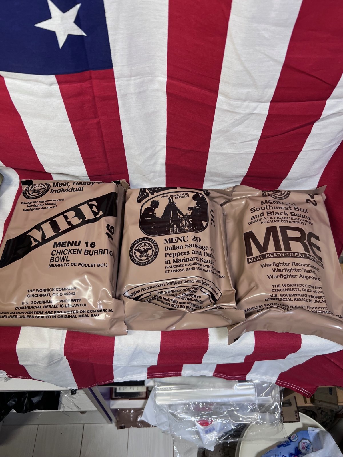 米軍実物 ワーニック社 2026年検 MREレーション/戦闘食 3個セット