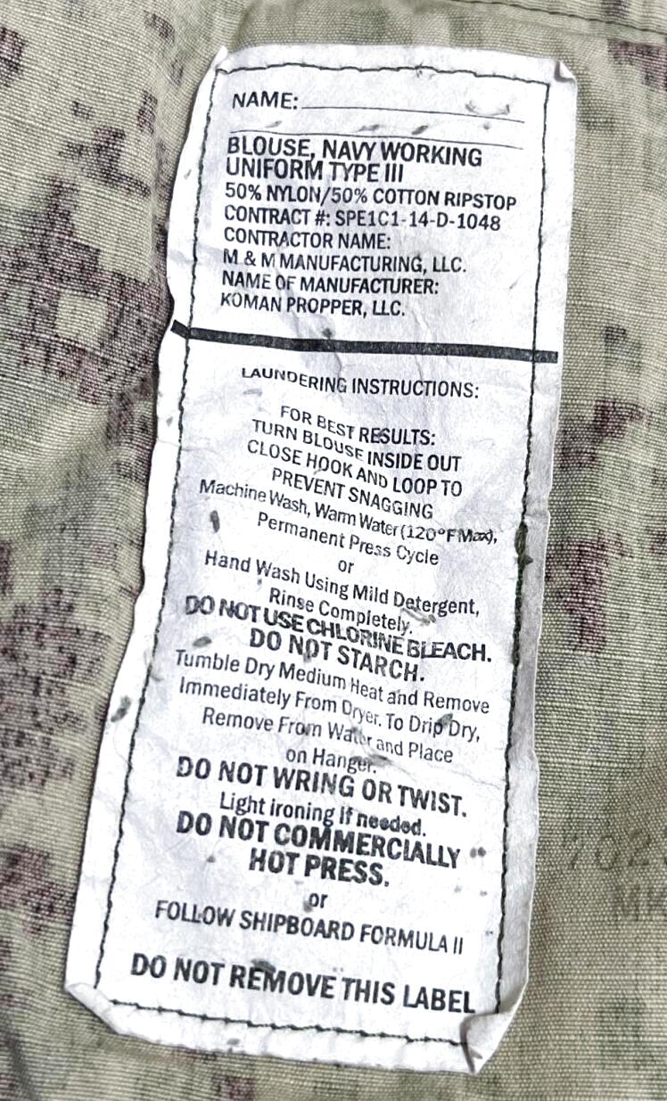 米軍実物,US NAVY, AOR2 NUW 迷彩ジャケット TYPEIII SMALL-SHORT